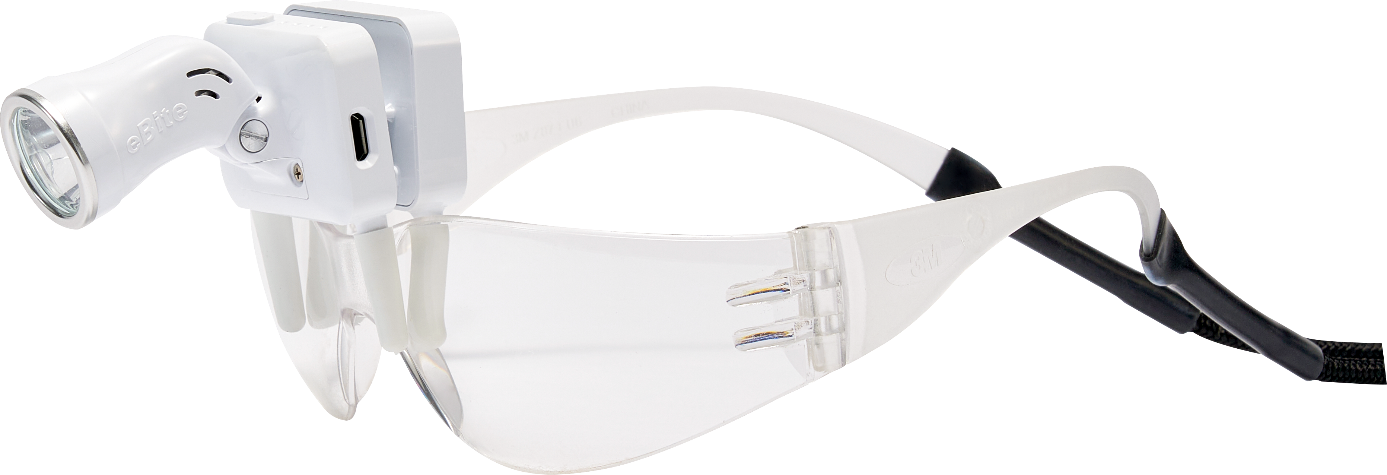 이러한 점을 개선하기 위해, eBite3는 어떤 안경이나 루페에도 클립 형태로 간편하게